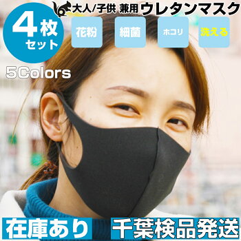 マスク 在庫あり 【千葉発送】 洗えるマスク 4枚セット ウレタン 軽量 立体形状 耳裏軽減 男女兼用 大人用 子供 サイズ ブラック ネコポス ますく マスク 洗える